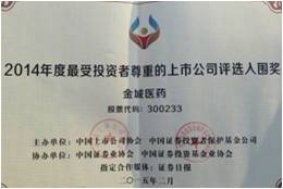 2014年度最受投資者尊重的上市公司評(píng)選入圍獎(jiǎng)